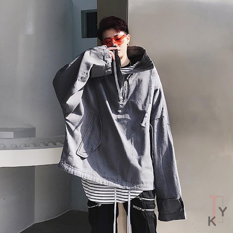 パーカー メンズ ロング Tシャツ 黒 オーバーパーカー 個性派